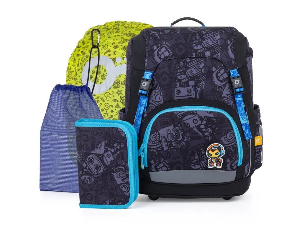 Zvýhodnený set školskej tašky s peračníkom, vrecúškom na prezúvky a nepremokavou pláštenkou.