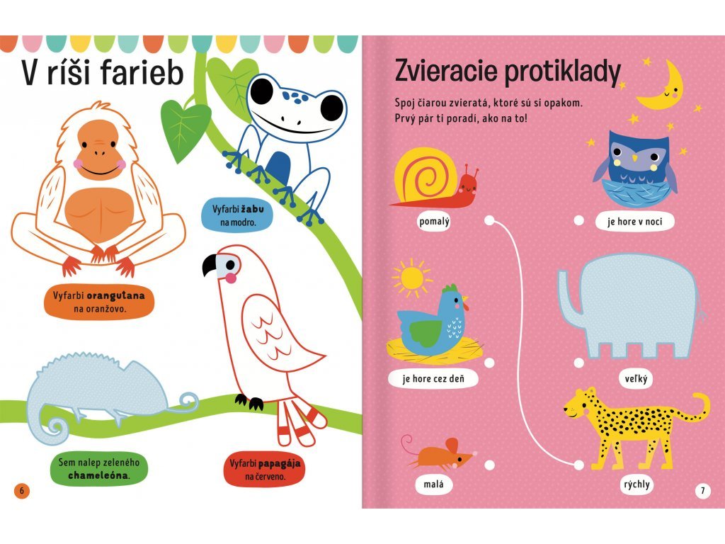 Kresli, vyfarbuj, dopĺňaj a nalepuj samolepky k aktivitám na každej stránke. Hor sa za dobrodružstvom so zvieratkami z celého sveta! V tejto knižke plnej aktivít a hier na teba čaká množstvo úloh a výziev. Spoj k sebe rôzne zvieracie protiklady, nalep správne názvy k jednotlivým zvieratám alebo si precvič písanie či počty s drobnými tvorčekmi. Dolepuj samolepky, vyfarbuj obrázky a dopĺňaj!
